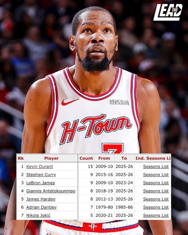 开云体育官网-赛季场均25+且真实命中率60+%次数:KD15次断档 库里&詹姆斯9次